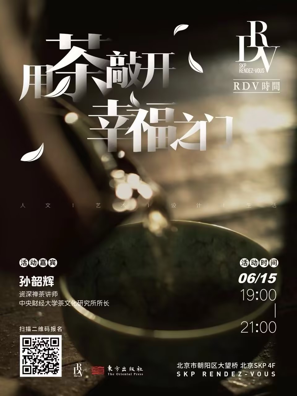 很多朋友会说:茶不就是个用来解渴、提神、送礼的小事吗?怎么会有“创造幸福生活”这么大的作用呢? 其实,人世间的智慧,讲究个阴阳平衡,往往是小中可以见大,四两拨动千斤,在大俗中蕴含着大雅,在平凡中可以成就非凡。 所以,虽然喝茶是“柴米油盐酱醋茶”这样的“小事”,是“互联你我一杯茶”这样的“俗事”,但茶还可以是“琴棋书画诗酒茶”这样的“优雅之事”,更可以是“茶道”“禅茶一味”“品茶品人生”这样的“玄妙之事”。 通过茶产品、茶活动、茶文化的有机结合,使得喝茶具有了健康、社交、审美和智慧功能,可以在生存、生活、生命、生死等人生的各个层面给我们以帮助和启发。从全息论的角度来讲,小小的一片茶叶中,蕴含着博大精深的文化内涵和人生智慧。所谓“一花一世界,一叶一如来”! 本次,我们邀请孙老师,和大家一起探讨“喝茶”这件小事和“人生幸福”这件大事之间的密切联系。小茶叶可以带来大幸福。如果您对喝茶缓解身心压力、获得幸福生活感兴趣,欢迎来到本次活动现场,聆听孙老师分享禅茶智慧。 除此之外,本次活动中,孙老师还将带领大家体验一场“正念茶会”。品一杯清茶,帮助您解暑润燥,去忧解烦;用一组方法,引导您感受茶的精气神;借一场茶会,唤醒您专注觉察的正念禅心。另有很多选茶、泡茶、品茶的专业知识及实战技巧现场亲授。 2024年6月15日(周六)晚19:00,我们特别邀请了资深禅茶讲师,中央财经大学茶文化研究所所长孙韶辉做客 北京SKP 4F SKP RENDEZ-VOUS,共享一场禅茶盛宴。一起喝茶得健康,聊茶得和谐,品茶得成功,赏茶得优雅,悟茶得智慧,融入茶中得自在,用茶敲开幸福门。